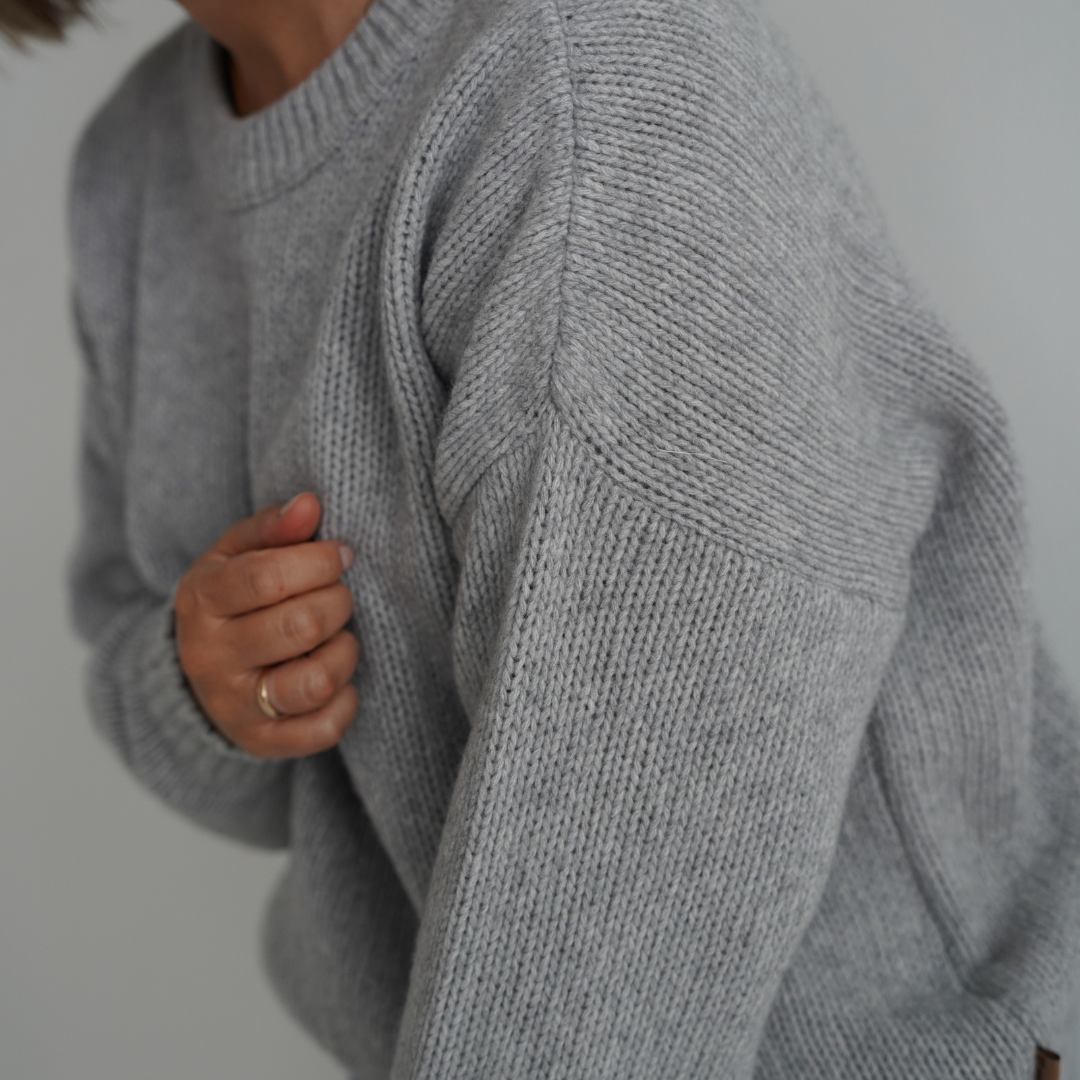 Sweter damski Patulove został stworzony z najwyższej jakości włoskiej przędzy – 90% wełny merino i 10% kaszmiru. Dzięki temu jest nie tylko niezwykle miękki, ale także otula ciepłem i zapewnia wyjątkowy komfort każdego dnia. Jego lekko oversizowy, ponadczasowy krój sprawia, że doskonale układa się na sylwetce i pasuje na rozmiary od S do L/XL.